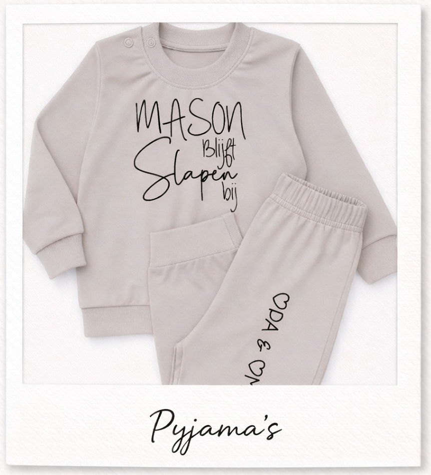Een logeerpartijtje bij opa en oma is altijd een feestje. Met deze gepersonaliseerde pyjama met eigen naam van Livingstickers Zaandam wordt het moment nóg specialer. Deze zachte en comfortabele kinderpyjama met naam is speciaal ontworpen voor kleine avonturiers die trots willen laten zien dat ze blijven slapen bij opa en oma.