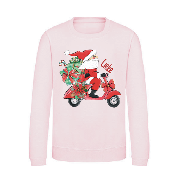 Kerstsweater met Kerstman op Scooter en Eigen Naam | Livingstickers Zaandam