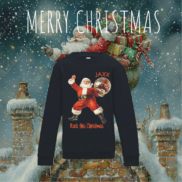 Deze unieke trui is perfect voor jong én oud — verkrijgbaar in zwart en rood, met een leuke print van een kerstman die op zijn scooter cadeautjes bezorgt. Voeg je eigen naam toe en maak van jouw kerstoutfit iets écht persoonlijks!