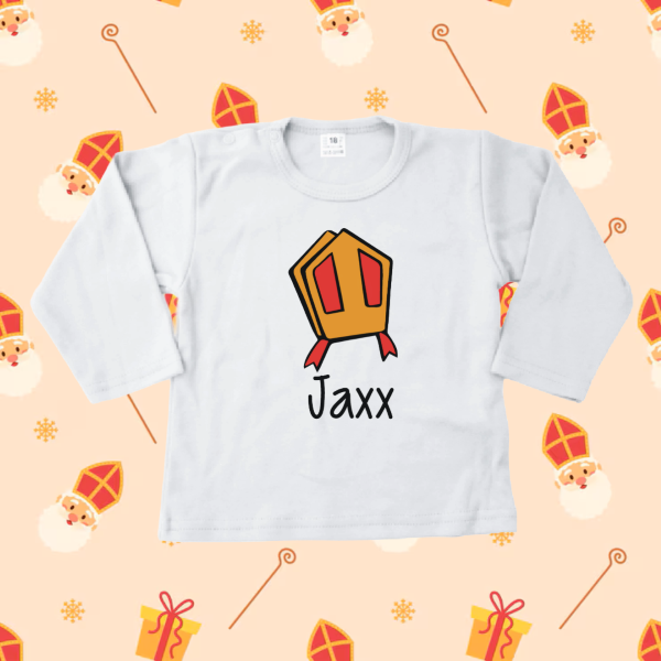 ? Uniek Sinterklaas ontwerp met tekst “Sinterklaas shirtje met mijter en naam